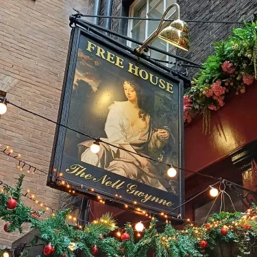 L-R Sally Salisbury (Harlots), private Hex tour gang London & Partners, Hawkins statue in Leicester market, Baroness and Polly with a happy customer (!) and The Nell Gwynne...